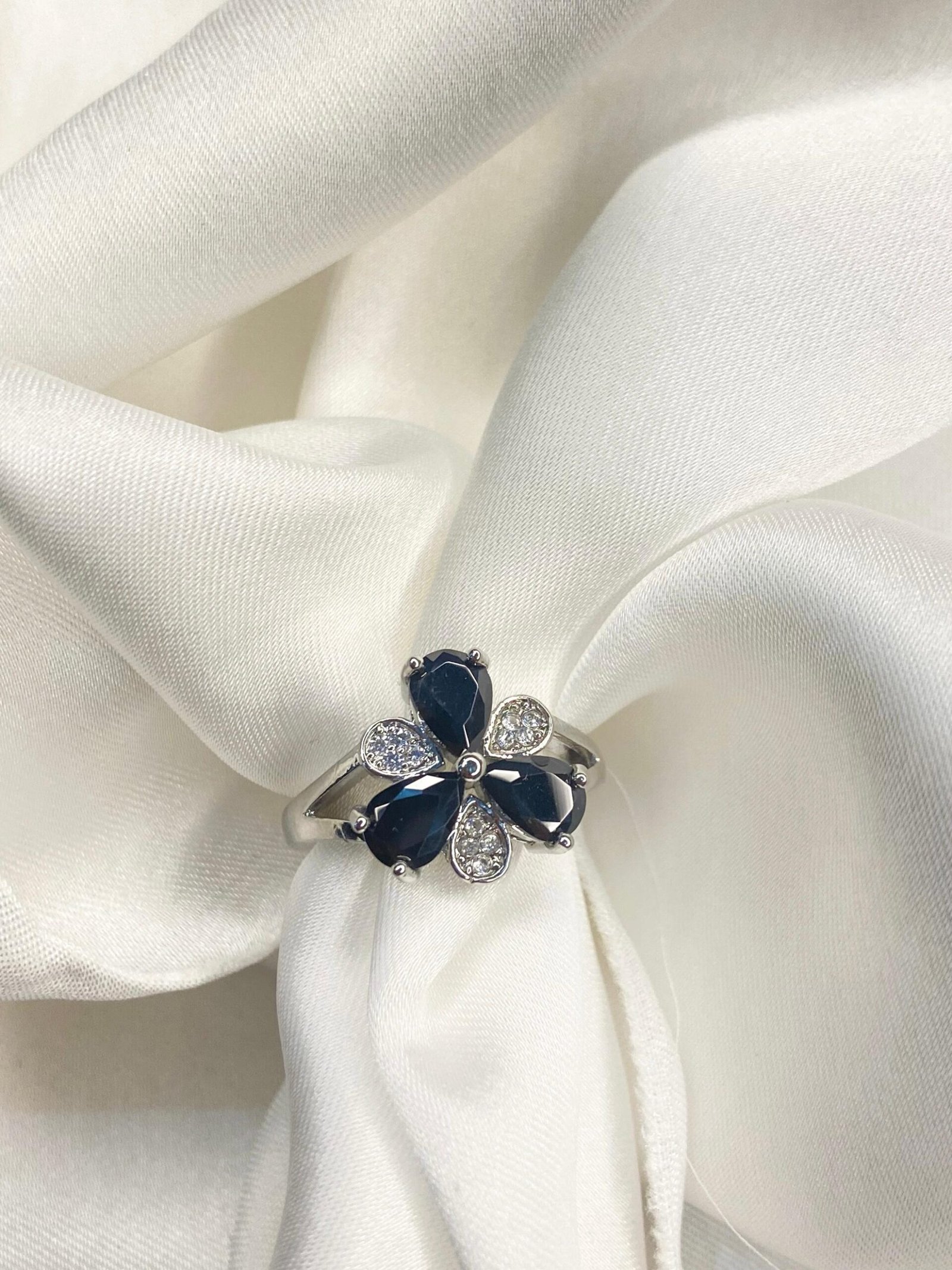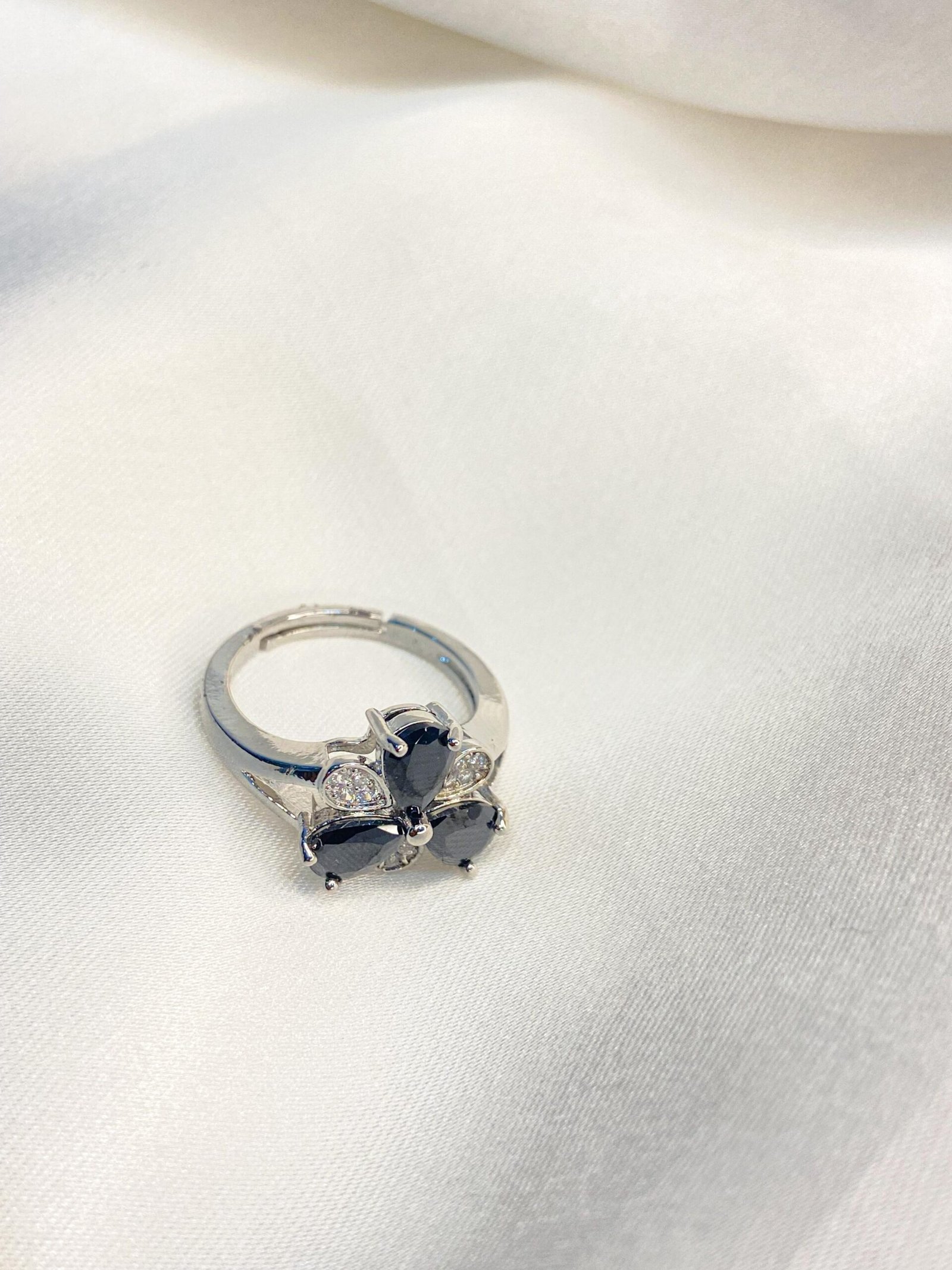 Be the first to review “Black Three stone flower ring”