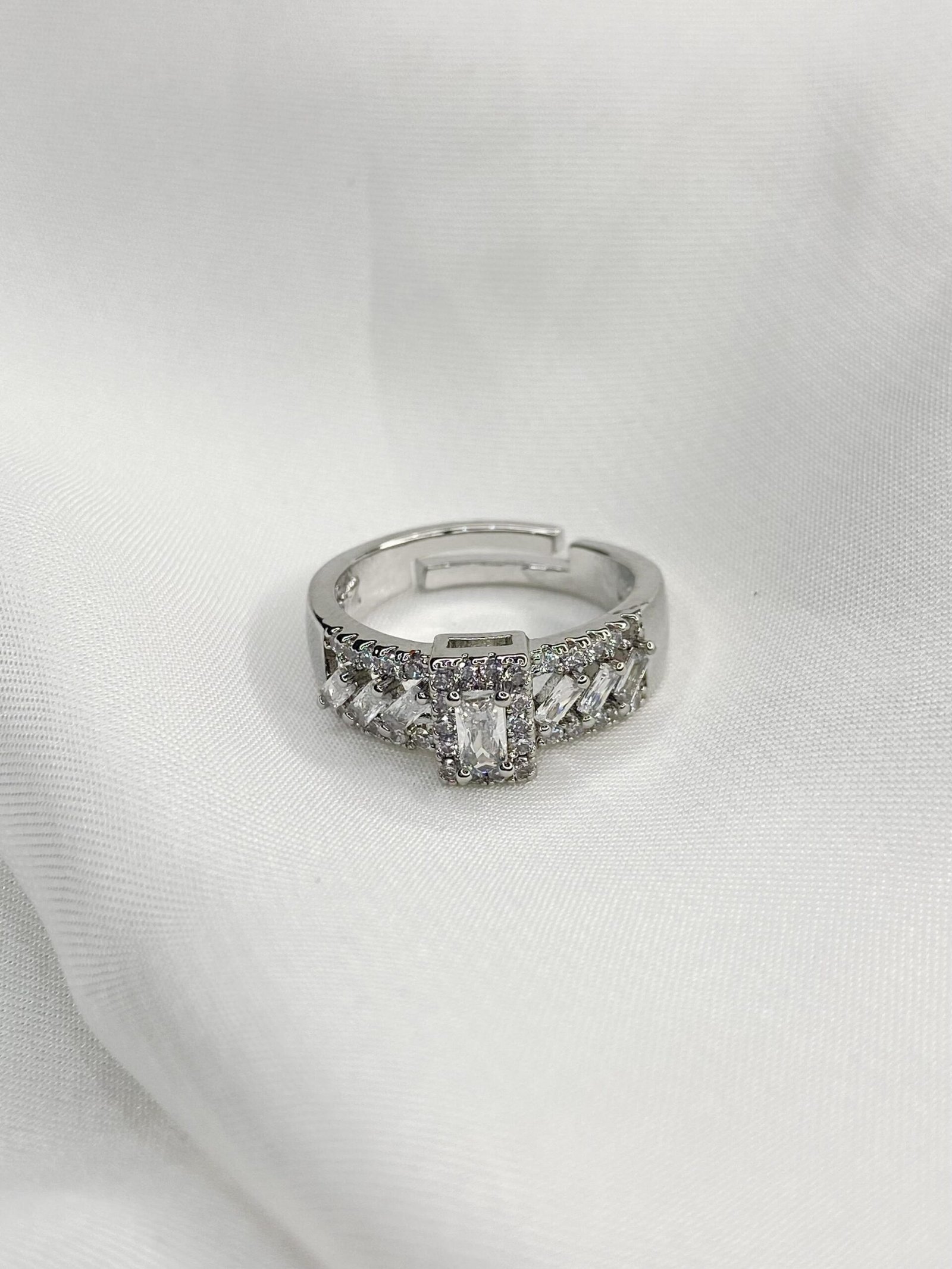 Silver zircon Adjustable ring